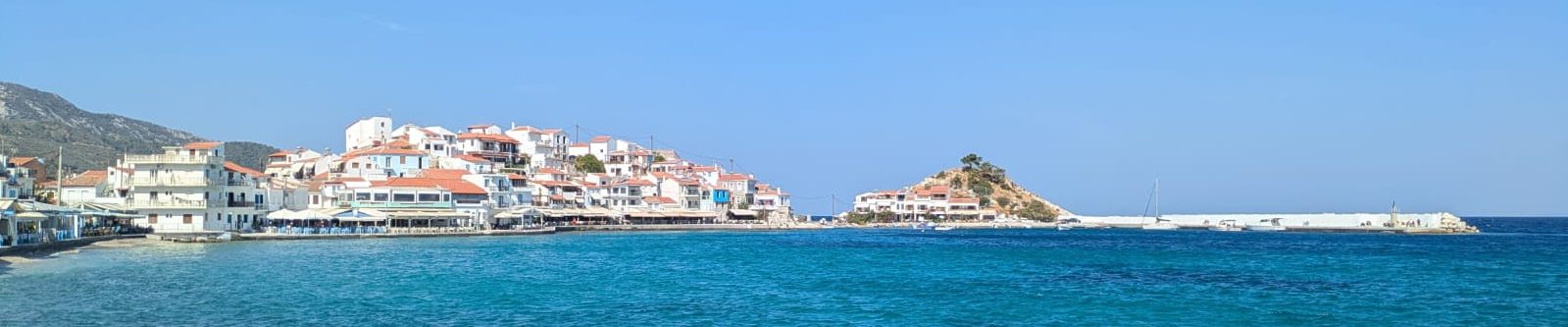 After the bustle of Poros, we opted for a bit of tranquility for 3 nights in a small bay on the north east coast of Poros island (Navily calls it Shoebill Bay). This was our first anchorage with long stern lines ashore. With the light wind in the right direction, blowing us towards the shore, it went perfectly, and surprisingly the sea was warm. On occasions we had the bay to ourselves, with just a few goats on the beach keeping us company. Also having stocked up on fresh pork chops and pork belly rashers, it was great to get the Cobb oven going on the back of the boat.