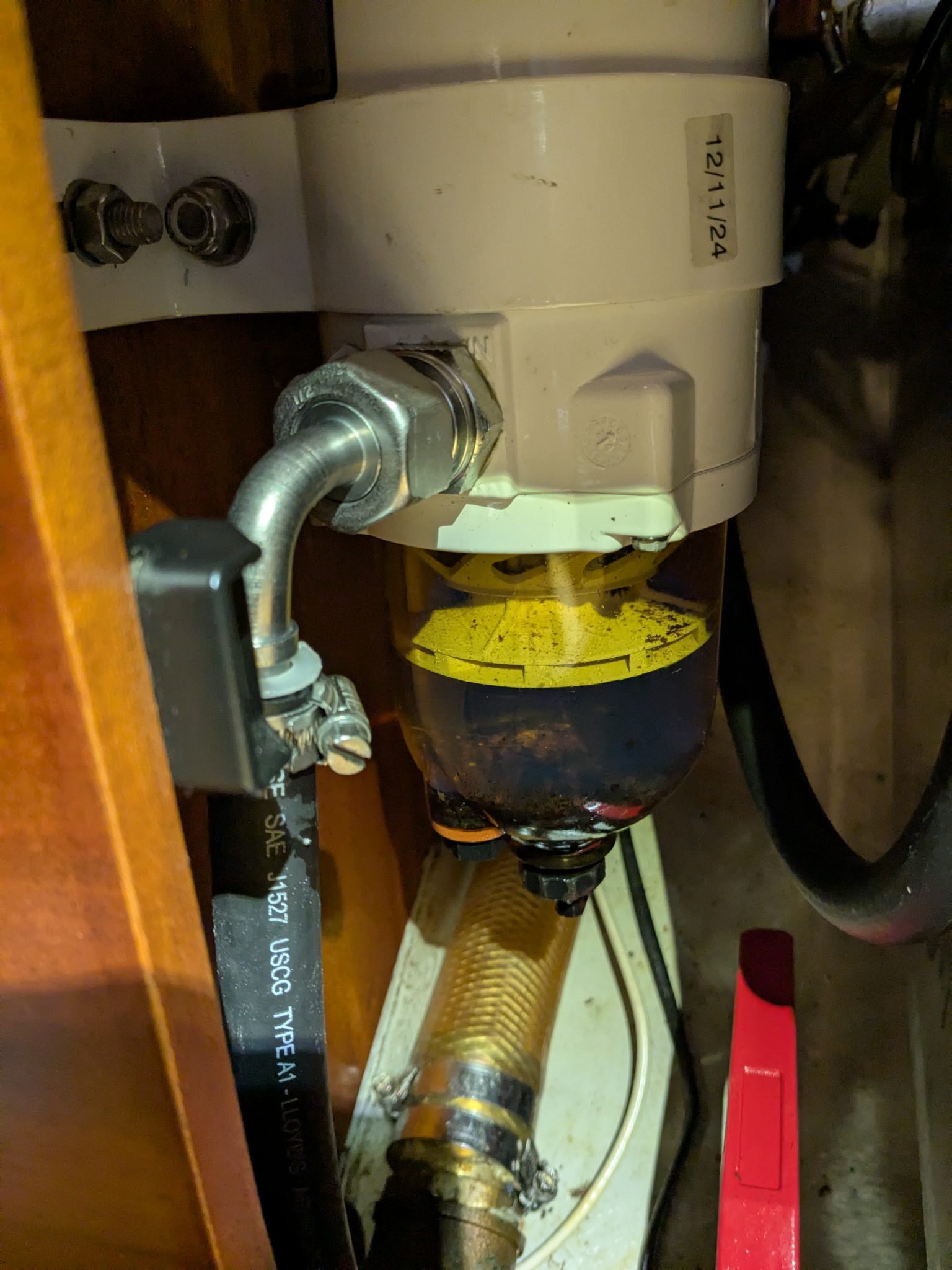 The most dirtiest job by far was sucking out the deisel bug from the main tank, through a filter to the reserve tank. Despite it not being too bad, with probably less than 0.5mm of black sludge in the narrow sump of the tank, it was sufficient to block some of the passage ways in the filter, which then required the oil extractor to unblock the filter, which also got blocked. A day and a half later and lots of swearing the thin layer of sludge had gone from the main tank.