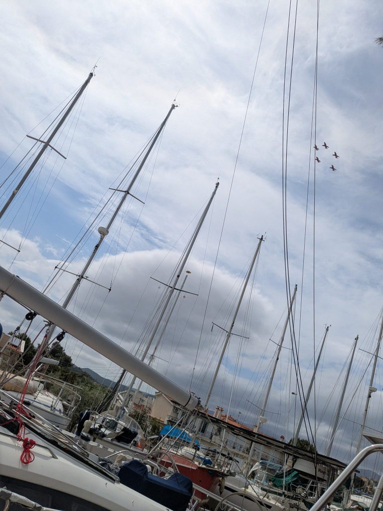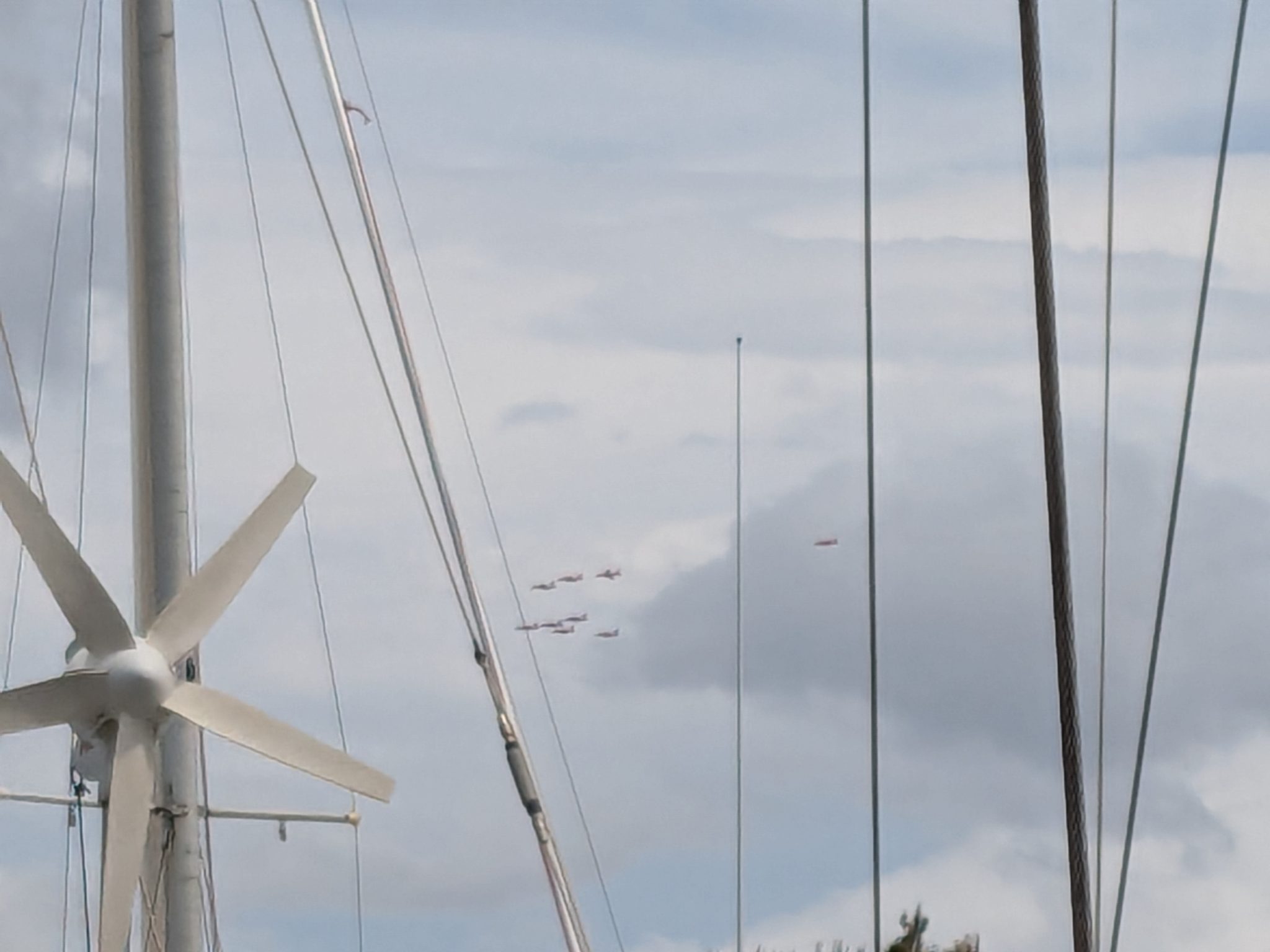 Outside the boat, things were not so good, with temperatures during the day little more than 15° with accompanying F5/6 winds, and being woken at 0807 most mornings with low flying aircraft. Apparently the Red Arrows base themselves a few miles away and practice for an hour or so 2 or 3 times a day.