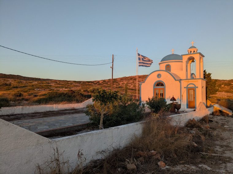 We went for a walk ashore, to the pretty village of Arkoi where we failed to moor up, and ended up eating in a rather disappointing Taverna Apolafsi, near where we’d tied our tender.